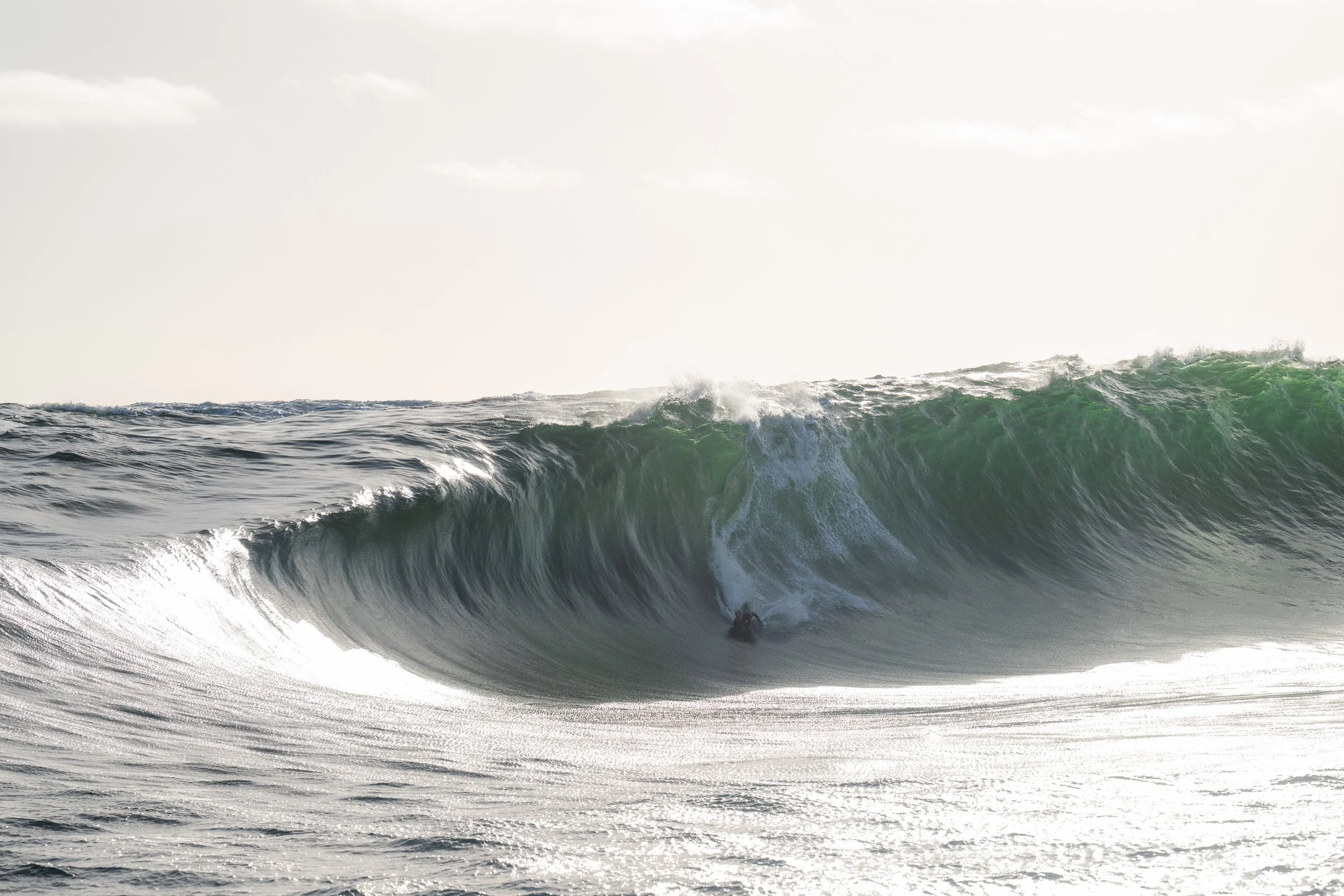 I sat in the channel for the rest of the afternoon. A bucket hat pulled over the top half of my face to shield my eyes from the brutally bright world. Focussed on trying not to vomit and mentally battling to handle the pain in my ears and head. The conditions were getting so wild out there too. The swell continued getting bigger and bigger and the other boys who weren’t yet injured (I wasn’t the only rider who got demolished on this day) were getting towed into some of the biggest waves I’ve ever seen out there. I couldn’t exactly enjoy the show with the state that I was in, but I could understand how special the afternoon was and although I wanted so badly to get to land and curl up into a little ball for a few weeks, I knew I had to stick it out and let the whole team do their thing. Like I said before, days like this don’t come around too often.